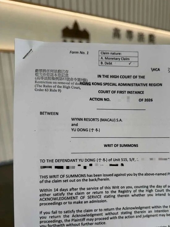 果不其然,当天晚上,每日经济新闻就爆出了从香港高等法院获得的永利赌场起诉于冬的文件。