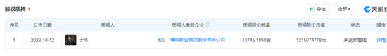 此外,2022年,于冬还曾将其持有的1.37亿股博纳影业股份质押给中信信托,用于满足个人融资需求。
